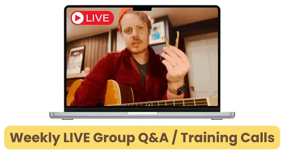 With this self-paced step-by-step roadmap and live group mentorship calls, you’ll unlock expressive chords, captivating rhythms, and timeless picking techniques that make your playing feel fresh, polished, and unmistakably you.